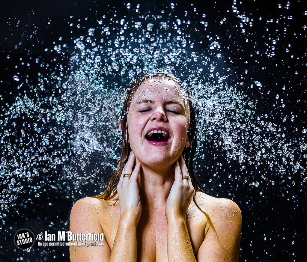 Certain themes at the studio have reoccurred many times over the 10 years we have been open. Shoots with water has been one theme that we have come back to on many occasions. Here in 2018 we have Karen modelling at a ‘model splash’ night, where among other images we were creating ‘water wig’ images. Other water-based shoots have included setting up a shower in the studio, busting water-filled balloons, and water droplet collisions.